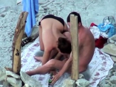 Beach voyeur films sexy milf sucking cock and getting fucked