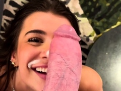 Wild babe rides hard cock and swallows hot load in POV